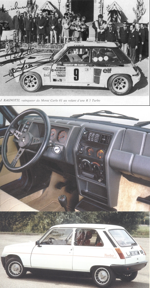 the R5 Turbo symbolised the maximum development of this car.Inheriting directly the 10 years of progress achieved in turbo technology on the circuits by Renault drivers and mechanics, Alpine produced the V6 Turbo to complete its range. Faster and more powerful than the normally aspirated version the vehicle made its first appearance in competition in Spring on the main European Circuits as curtain raiser for the F1 Grand Prix within the framework of the Europa-Cup.