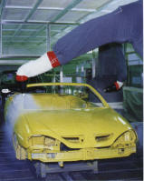 Robots were introduced for painting. The factory was a large building site for much of the year. Following the automation of the application of mastics in April, September saw the introduction of six additional robots for the application of paint and lacquer. |