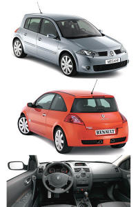 Renault Mégane RS Manufactured in the Dieppe factory, the Mégane RS inherited the 2 litre 16 valve turbo charged engine from the Vel Satis. It underwent modifications to the pistons, crankshaft and turbo. The capacity was increased and the output was 225bhp, 300 Nm torque. |