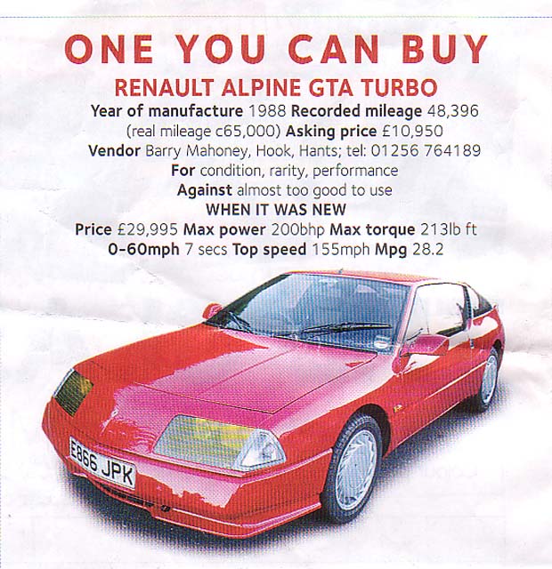 an original Alpine GTA sales brochure.
