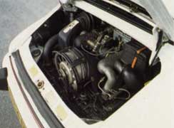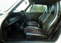 But it's not a difficult car to drive, nor is there a great feeling of occasion when you get behind the wheel. The interior is simply too prosaic for that. The dash is plasticky, and not attractive. The switchgear especially those little rocker switches littered over the dash is cheap, and would be derisive if part of an Escort GL package, let alone that of a £30,000 sports car. Porsche has had 23 years to sort out the ergonomics. The fact that it is still disgraceful suggests an unhealthy indifference to customers' needs. The seats look cheap, do not hold the driver or passenger well in quick motoring, and are not particularly comfortable. The off-set pedals owing to front wheel arch intrusion force a skewed driving position, and the unbelievably ugly plastic centre console looks as though it has been stuck in by some plebeian owner, rather than by Porsche 'craftsmen'. Unlike most pukka sports cars, the 911 does have rear seats which are useful for small children or luggage. The front boot is reasonably large, if shallow. It's the best of the bunch here.