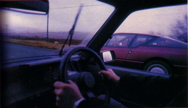 And then it started raining. Our original plan had been to come off the M54 and go into Telford for some town driving. In fact soon after leaving the A5, I got lost and had to stop to let Peter and helper Ed in the 5 Turbo go in front and navigate. The problem was that the GTA's eccentric handclap wiper system leaves huge unswept areas of screen which combine with the screen pillars and the mirrors filling the quarterlights to give a huge blind spot. So aswe hit roundabouts for the first time, I found that I could not see into them. With the interior mirror restricting vision the other way, it also made it difficult to spot direction signs in time. It is something you learn to live with; you soon get used to looking earlier and looking through the side window itself of near the screen pillar. Following the 5 along its namesake A-road, I found overtaking risky as I tried to peer through the spray of other cars via the unswept screen. The alternative was to pull right out so that you could use the swept section.