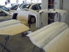 The bodywork from the car has been removed and we have started to offer up the new panels. We will have to fabricate a few mounting points I suspect, also there is no undertray on the front bumper unlike the GTA. The rear wing extensions require the old wings to be cut away, tho' we are trying to retain as much as possible of the old wing so that strength is not compromised... there is only a minor weight issue. The genuine Le Mans cars had most of the rear wing removed and inner wing extensions installed to fill the gap.